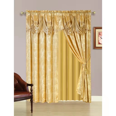 Elegante tenda doccia Dobby con doppio Swag e mantovana realizzata in poliestere Premium