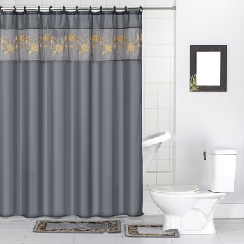 15 100% רקמה פוליאסטר מקלחת אמבט וילון אמבטיה סט חיה פרחונית הכוללת 1 מחצלת 1 אמבט 1 קונר 1 וילון 12